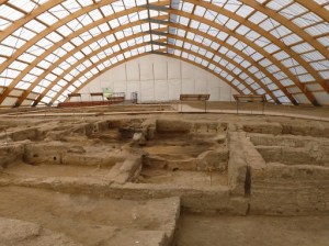 I also used to read about Çatalhöyük, a Neolithic site about 10,000 years old that makes the Sphinx seem like a baby. Most people learn about Çatalhöyük in terms of its sociological importance: the site proves that some human cultures practiced gender egalitarianism. Men and women had the same diets, there was no social stratification, and no evidence of warfare or strife. Some believe Çatalhöyük also illustrates matrilinearlity and the worship of a mother goddess. So, just as there are Sufi pilgrims in Konya proper, there are also pagan and goddess pilgrims at Çatalhöyük. The site is 45 minutes out of Konya in the middle of nowhere but it only costs 35 Euro to take a taxi both ways including having the driver wait. When we were there the site was empty except for the guard who showed us around as most folks visit in the summer when the team of archaeologists are working. The site is a work in progress (which is why it’s free to get in) but the dig is already on an impressive scale.